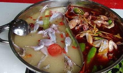 3. 下食材:待火锅底料煮开后,将田鸡和蔬菜依次放入锅中,煮至食材熟透。